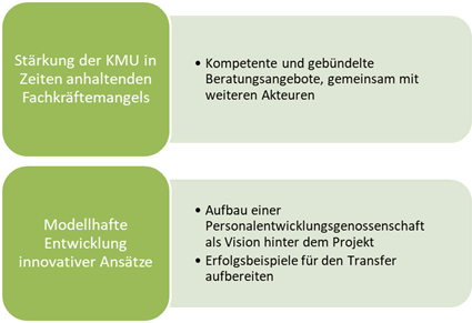An dieser Stelle setzt das Projektteam an, das den Unternehmen in der Region bei allen Herausforderungen der Personalentwicklung zur Seite steht. Dabei verfolgen wir vier Ziele: